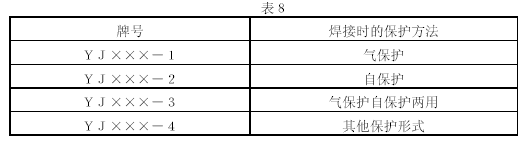 b)牌號“-”后的數字,表示焊接時的保護方法,見表8。