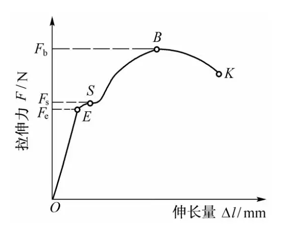 當(dāng)拉伸力增大到Fs時(shí),曲線上出現(xiàn)水平(或鋸齒形)線段,即表示拉伸力不增加,試樣卻繼續(xù)伸長,稱此現(xiàn)象為“屈服”。