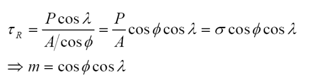 當λ = ø =45 ْ時,剪應力****。如果兩個角度中的任何一個等于90 ْ,那剪應力分量為零,因此將不會發生滑移。