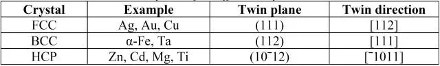 當然,孿生和滑移可能按順序發生或甚至在某些情況下同時發生。表2給出了一些金屬的孿生系。