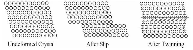 在塑性變形過程中孿生扮演了重要角色,它引起晶面取向的變化,以致于可以發生更進大的滑移。