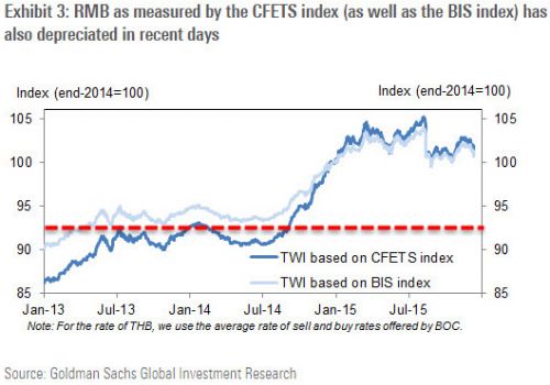 “新指數(shù)的發(fā)布并不一定意味著中國央行將讓人民幣盯住該指數(shù),”高盛表示,“事實(shí)上最近用CFETS衡量,最近人民幣跌的反而跌的更多!备鶕(jù)高盛的計(jì)算,12月3日以來CFETS匯價(jià)跌1.3%,同期CNY/USD跌1.07%。